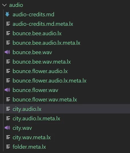 Since audio tends to be fairly straight forward from a content perspective, all we need to do is drop some audio assets into our project. When we build, the asset pipeline will automatically generate the necessary audio.lx metadata files for us to use!