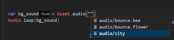 var bg_sound = Asset.audio("audio/city") Audio.loop(bg_sound)