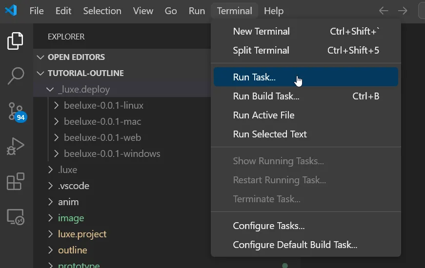 If you visit the Terminal menu on the main menu bar, you’ll find a Run Task... menu option: