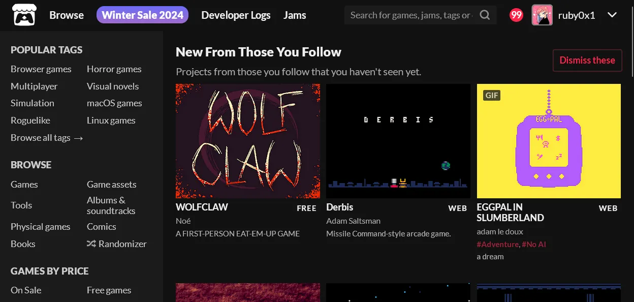 Their system deals with cross platform details mentioned above, so if you made a zip of each of these folders and uploaded it to itch.io following their documentation and guidelines, you’re good to go. You can also join game jams or host one and a lot more.