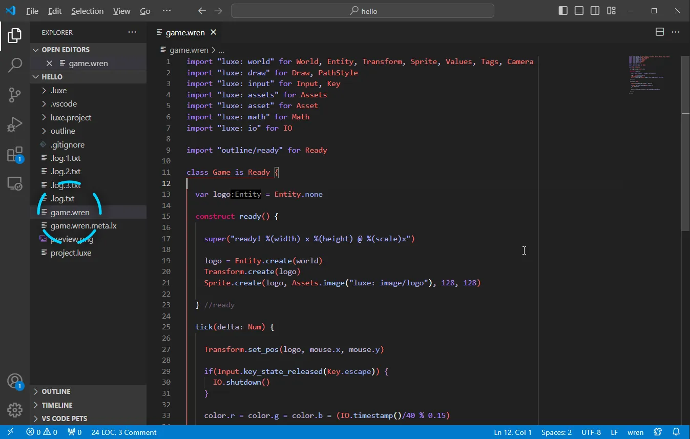 Section titled “The project entry point”Your project usually contains a file called game.wren.