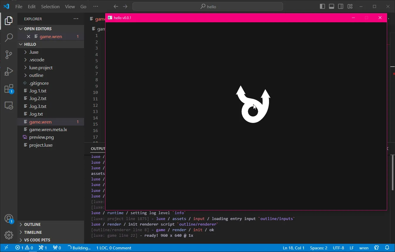 Section titled “Next up…”If you look around your game.wren file you might notice a ready function, and the tick function.