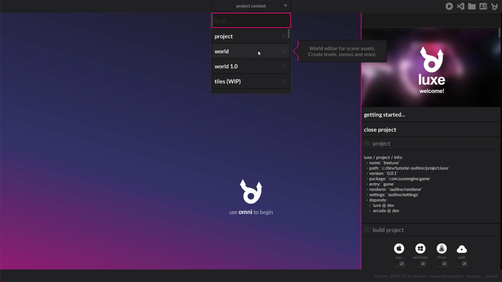 This tutorial is an introduction to working with the luxe editor, not a complete guide.