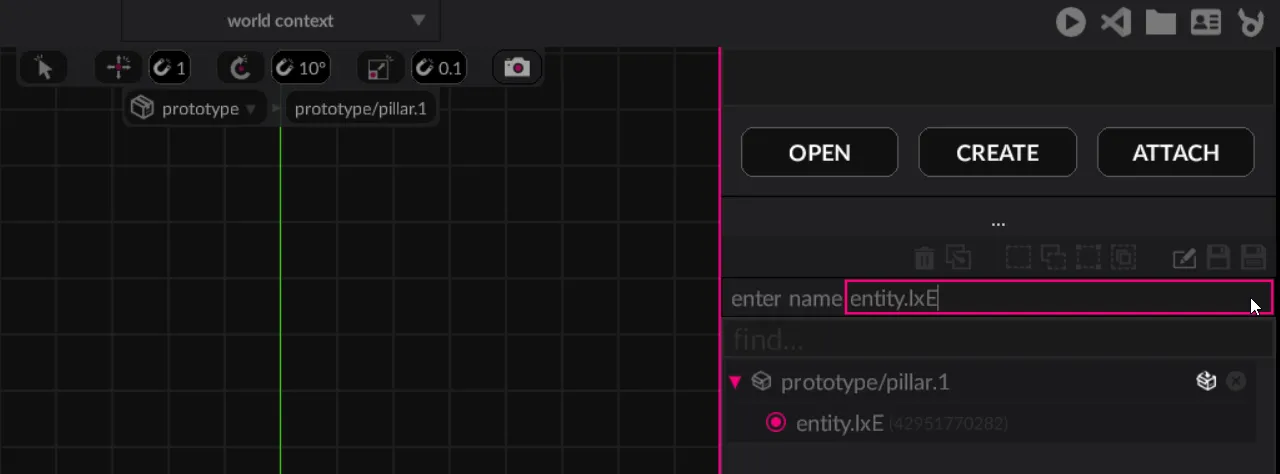Now that we have some content, we can see a root entity for the prototype in the outliner, and entities below that it creates.