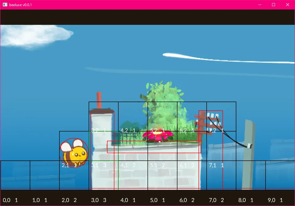When we hit a collider, we get the height and check the distance. If the distance is less than 32 (half the radius of our bee), we’ve just hit the edge of the collider with the bottom of the bee and we can ignore it.