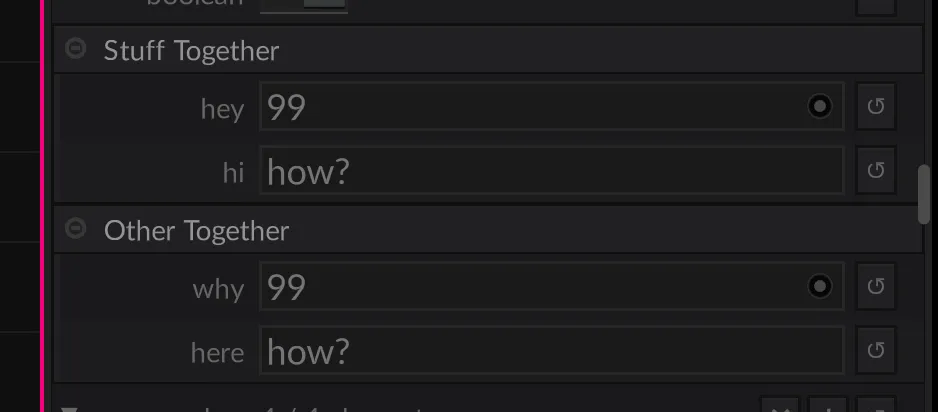 //Groups //Any consecutive fields with the same group tag //will be collected together in a collapsible group
