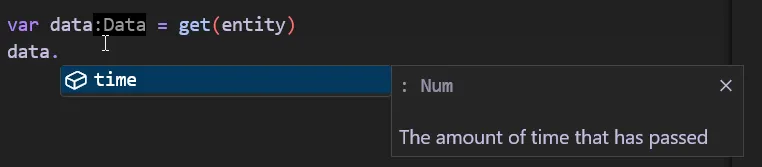 (Clock is API)does a lot of work for us to make our day easier. Let’s reset the time value inside our API function. To do that we use theget(entity: Entity) : Datamethod. This returns the per entity data block for us to use!There’s also